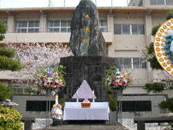 爆死児童14名の碑がまつられている。毎年4月