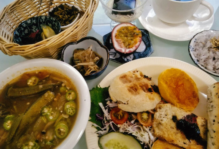 自家栽培の有機野菜を使ったスープ、サラダ、天然酵母パン他、安心安全のお腹いっぱいメニュー