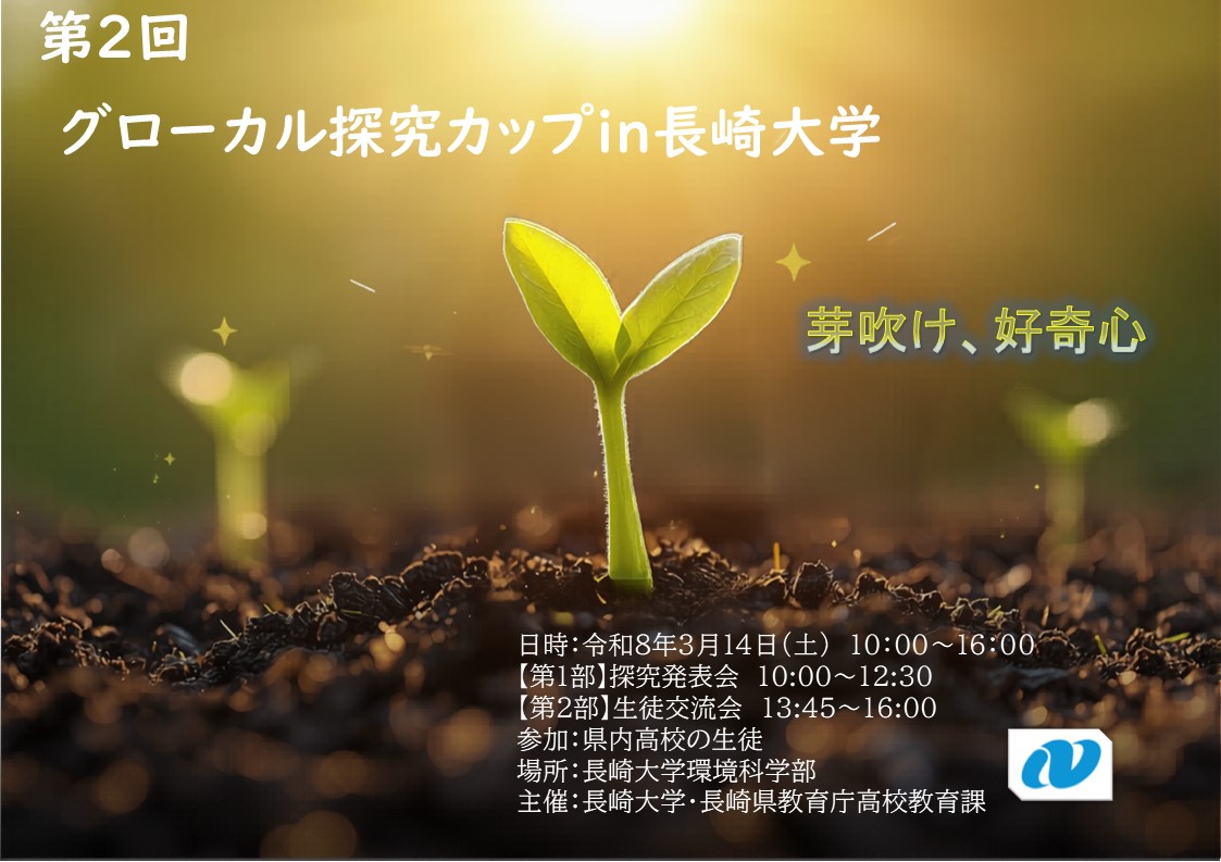 本課では、長崎大学と長崎県教育委員会が連携して実施した「長崎大学との協働探究」での成果を発表し、質疑応答や講評をとおして活動を振り返ることで探究的な学びを深化させる契機とすること、および県内高等学校の学校間の垣根を越えた発表の場を設けることで、県内の探究活動の活性化及び深化を図ることを目的として、「第2回グローカル探究カップin長崎大学」を開催します。